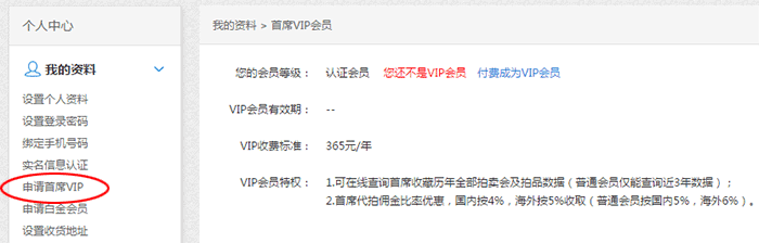 登录首席会员账号,进入“个人中心”,点击左侧导航菜单的“申请首席VIP”,根据引导完成首席钱包充值,支付VIP会员年费后,您就成为了首席VIP会员,只有首席VIP会员(或更高级别的“白金会员”)才能在首席收藏网申请开店。